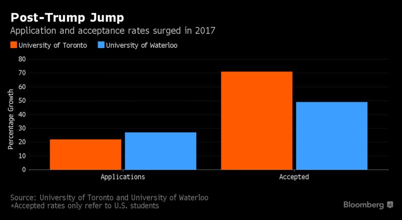 Meanwhile American applications to Canadian tech companies are increasing following the election of Trump. Shopify Inc. reported a 40 percent increase in the first quarter of 2017 over all of 2016, and Zoom.ai Inc. saw a 31 percent rise from nearly zero for engineering roles, Karen Greve Young, vice president of partnerships at MaRS Discovery District, another Toronto tech incubator, told Bloomberg TV Canada.