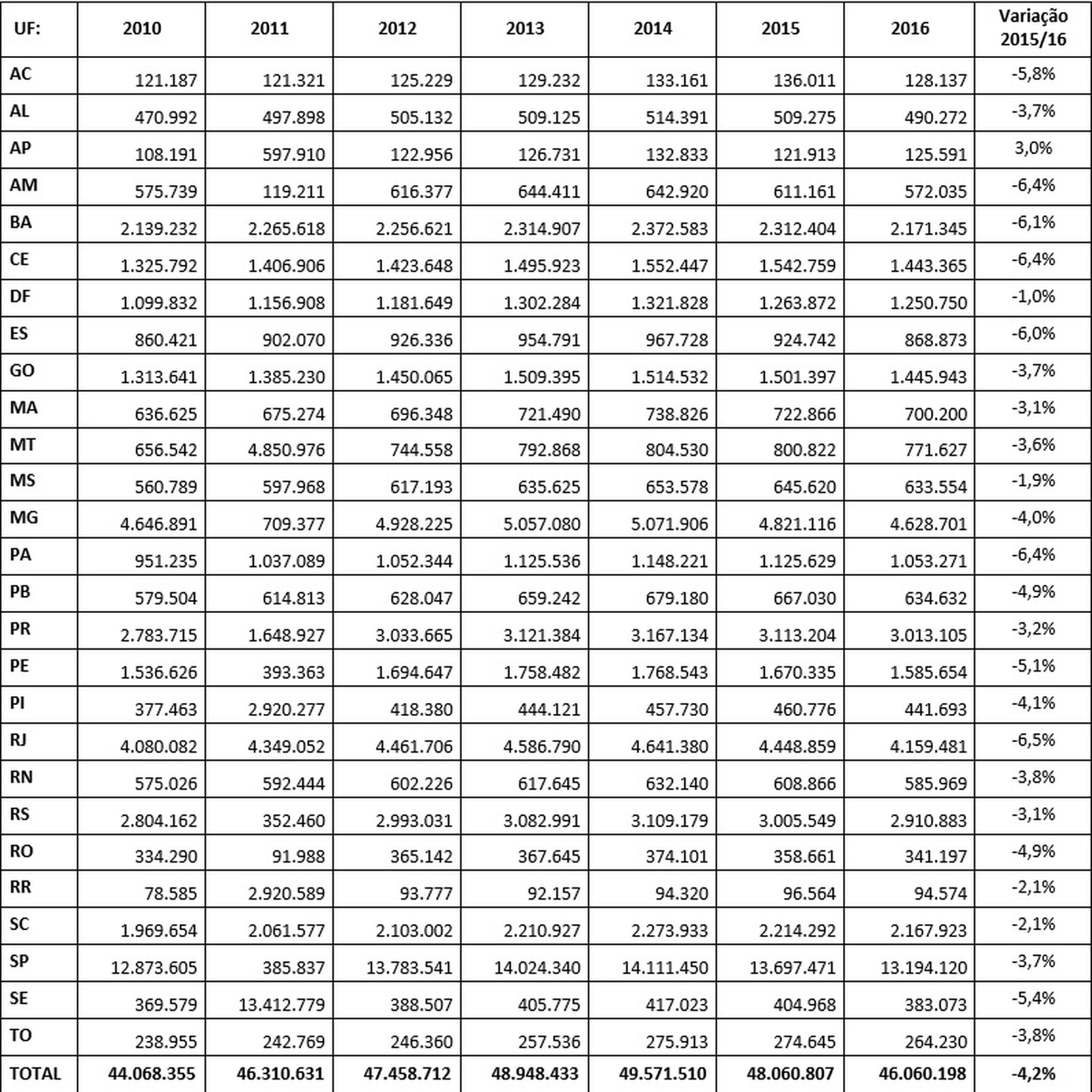 Com essa baixa no mercado de trabalho formal, o estoque de trabalhadores que era de 48,06 milhões no final de 2015 recuou para 46,06 milhões de postos no final de 2016. Para o final de um ano, é o menor estoque desde 2011 (46,31 milhões).