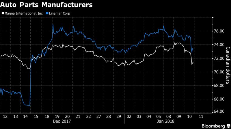 Auto-parts giant Magna International Inc., which analysts believe could be particularly vulnerable to changes in the trade agreement given that its parts are used by U.S. auto manufacturers, fell 3.2 per cent.