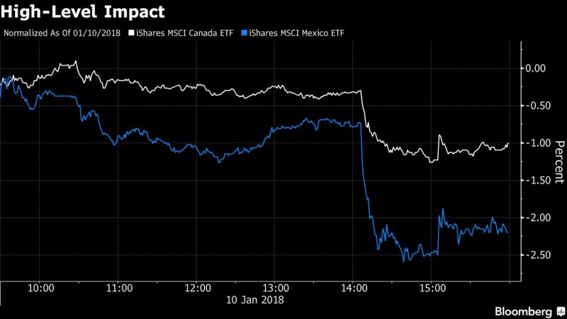 Reuters reported earlier in the day that Canada was increasingly convinced that Trump would soon announce the United States intends to pull out of the North American Free Trade Agreement (NAFTA), sending the Canadian and Mexican currencies lower and hurting stocks across the continent.
