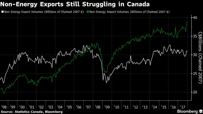 “Canada’s trade picture remains quite weak as non-commodity exports have made almost no traction for nearly a decade,” Benjamin Reitzes an economist at Bank of Montreal, said in a note to investors.