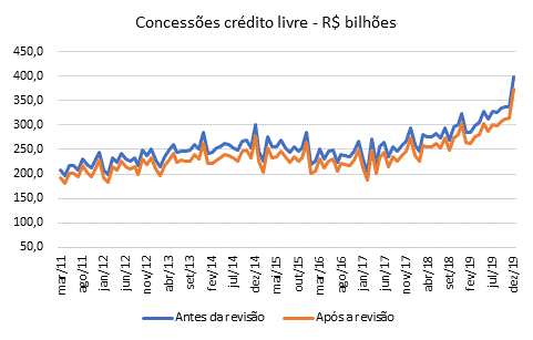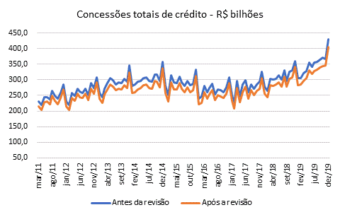 A tabela anexa resume o efeito conjunto das revisões acima mencionadas nas séries agregadas de concessões, em dezembro de 2019.